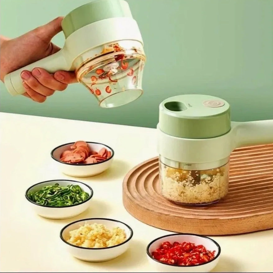Con la Picadora SliceGo 4X , un mini procesador de alimentos inalámbrico y recargable por USB , podrás triturar, rebanar, pelar y cepillar con total facilidad. Su capacidad de 200 ml es ideal para porciones pequeñas, permitiéndote preparar justo lo que necesitas sin desperdicio. Con una velocidad única , su uso es intuitivo y eficiente, perfecto para cualquier cocina.
